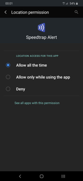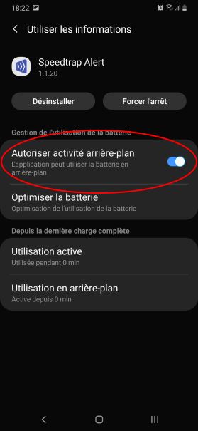 Dans Applications → Speedtrap Alert, Autoriser tout le temps l'application