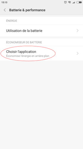 2/ Allez dans Batterie & performance, puis Choisir l'application :