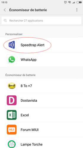 1/ Allez dans les paramètres du téléphone, puis Autorisations, Autres autorisations, Afficher une fenêtre indépendante. Cochez "Speedtrap Alert" dans la liste.