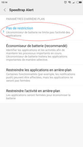 Sélectionnez l'application Speedtrap Alert et choisir Pas de restrictions: