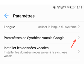b) Allez dans Paramètres de Synthèse vocale Google: