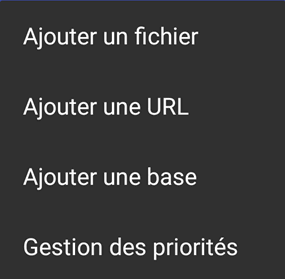 - Gestion des priorités : permet lorsque plusieurs bases et fichiers sont installés de définir un ordre de priorité d'alerte. Il suffit de faire un appui long sur une base pour la déplacer et ainsi la rendre prioritaire sur toutes les autres si elle est placée en première ligne.