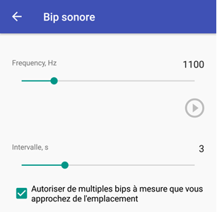 Les bips sonores se déclenchent à mesure que vous approchez de l'emplacement. Il est conseillé de laisser coché la case autorisant de multiples bips, cela permet de savoir ou en est l'alerte (un bip au début du déclenchement, puis deux et trois à la fin de l'alerte).