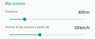 si vous roulez à 20 km/h, l'alerte vocale débutera à 250m, valeur fixée comme minimale (voir valeurs minimum et maximum dans image ci-dessus)