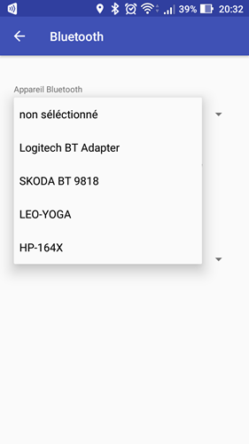 Appareil Bluetooth affiche dans une liste déroulante les appareils Bluetooth associés à votre téléphone ou à votre tablette. Il ne sont pas connectés à ce moment, seulement jumelés. Vous pouvez sélectionner un périphérique et les options ci-dessous spécifient les actions à effectuer lorsque votre téléphone ou votre tablette se connecte à cet appareil: