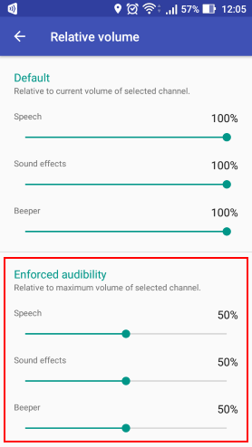 When this option is set to enabled, the app always duplicates all its sounds to the phone speaker. In this case, the volume is adjusted in Volume settings. Note that the volume of sounds being sent to the phone speaker is relative to the maximum possible volume phone can play.