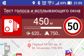 Для голосовых предупреждений используется синтезатор речи. Чтобы быстро проверить функционирование синтезатора, выберите команду "Быстрый тест" в меню приложения (3 точки в правом верхнем углу).