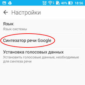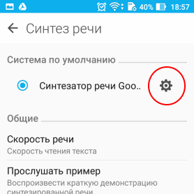 Настройки синтезатора обычно располагаются в настройках телефона, раздел "Язык и ввод", далее "Синтез речи".