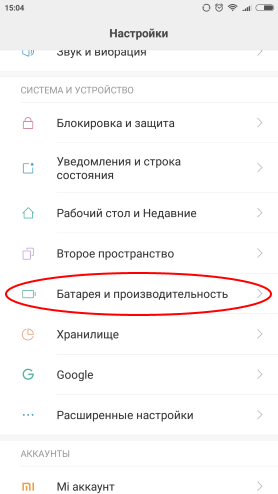 Откройте настройки телефона, выберите "Батарея и производительность".
