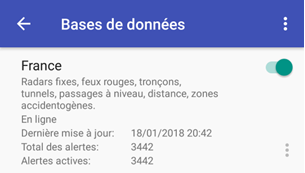 - Gestion des priorités : permet lorsque plusieurs bases et fichiers sont installés de définir un ordre de priorité d'alerte. Il suffit de faire un appui long sur une base pour la déplacer et ainsi la rendre prioritaire sur toutes les autres si elle est placée en première ligne.