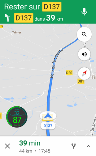 si vous roulez à 50 km/h, l'alerte vocale débutera à 800*(50/100) = 400 m en amont