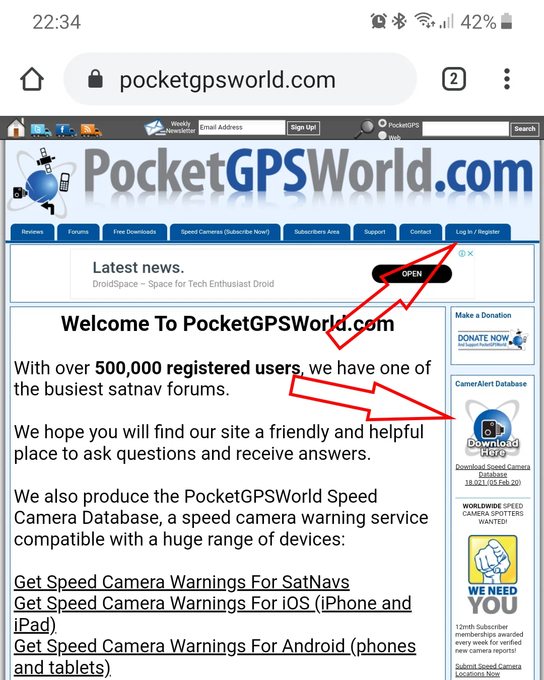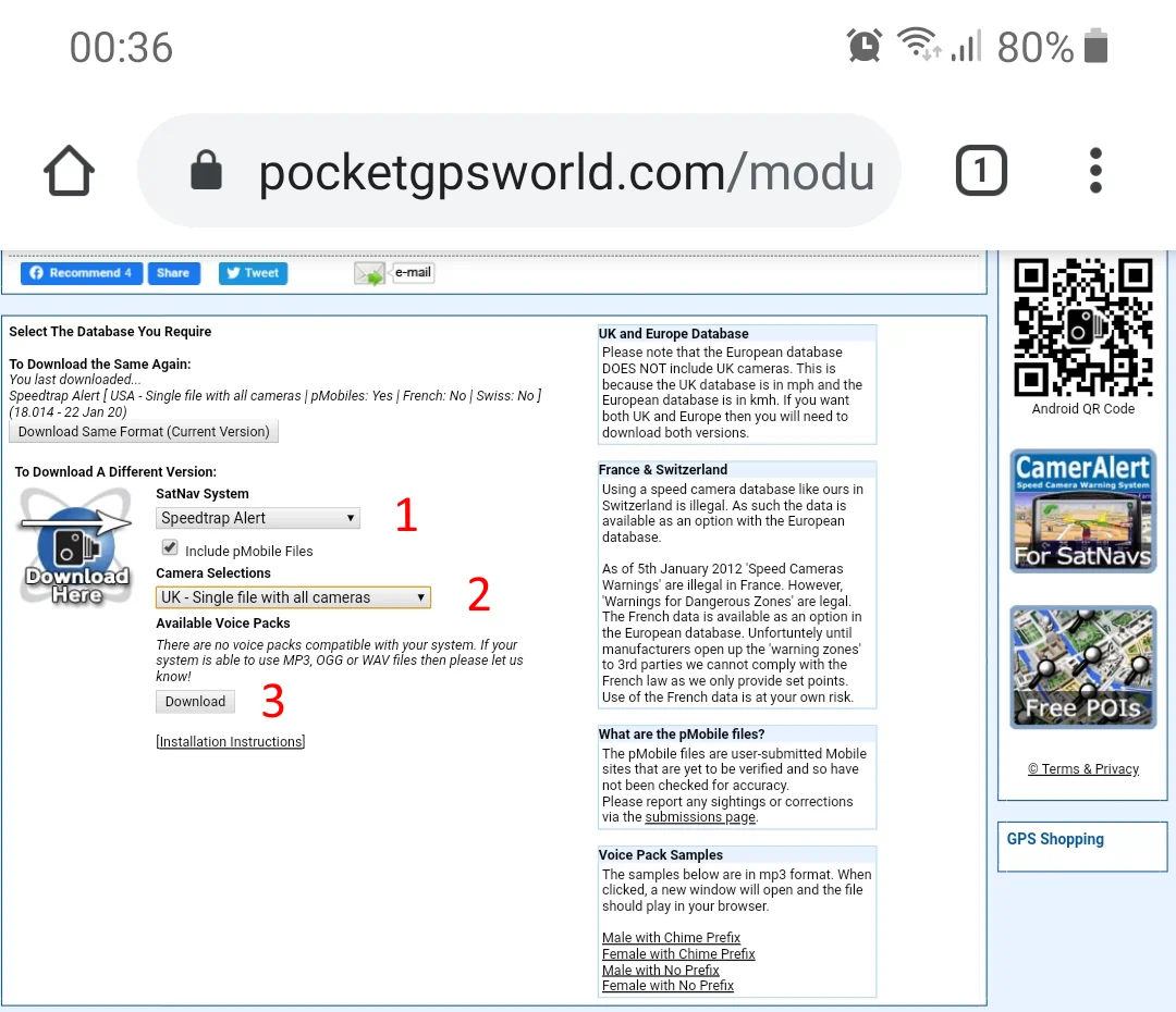 1. Authenticate on PocketGPSWorld website and open the database download page.