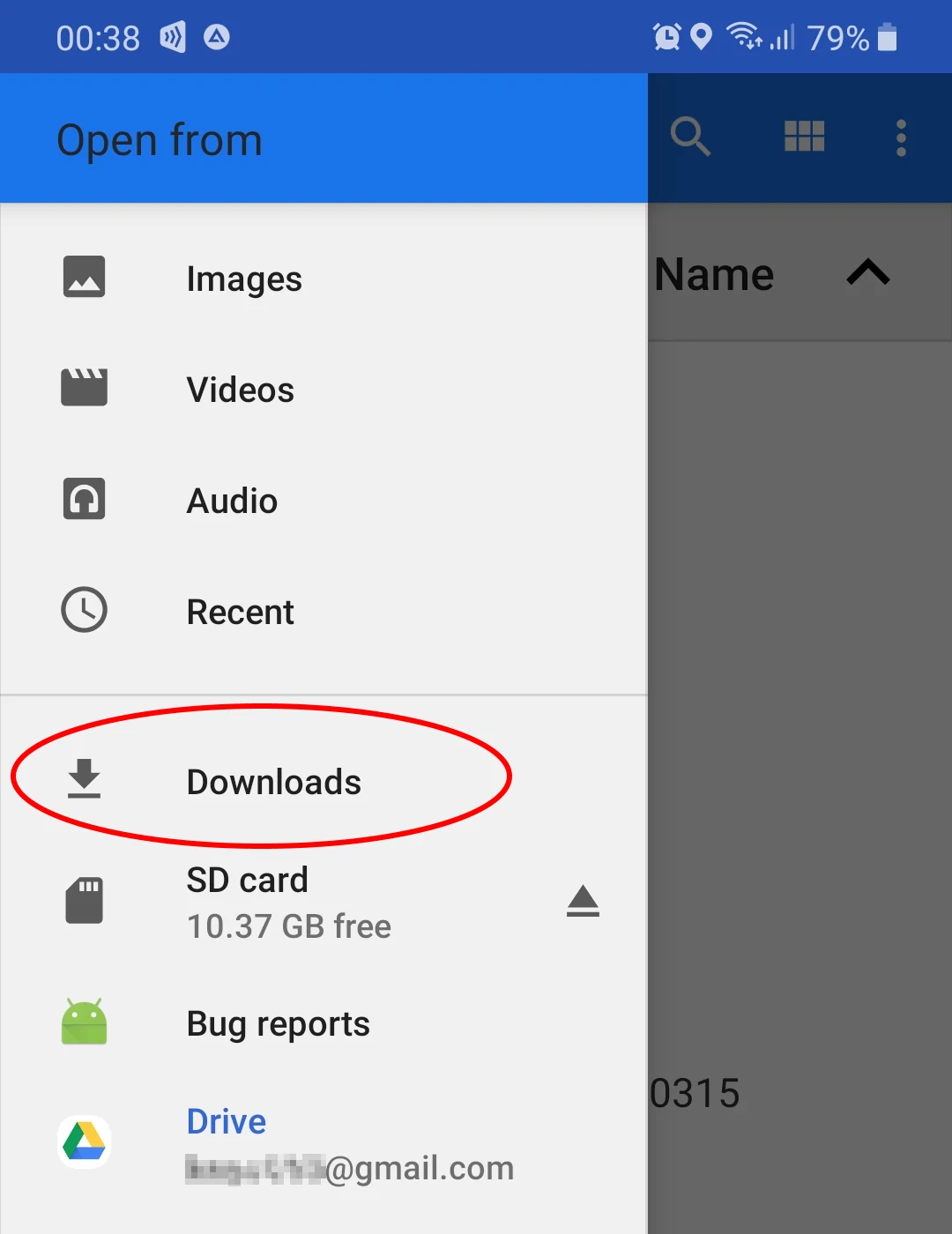 4. The app will open standard system file picker. It may look little different on different phone models and Android versions. Screenshot below demonstrates the picker on Samsung devices with Android 9 and One UI 1.1. Select the Downloads item in the left picker's menu.