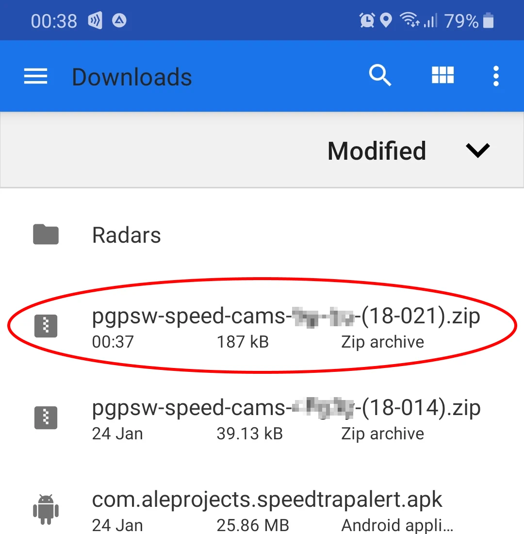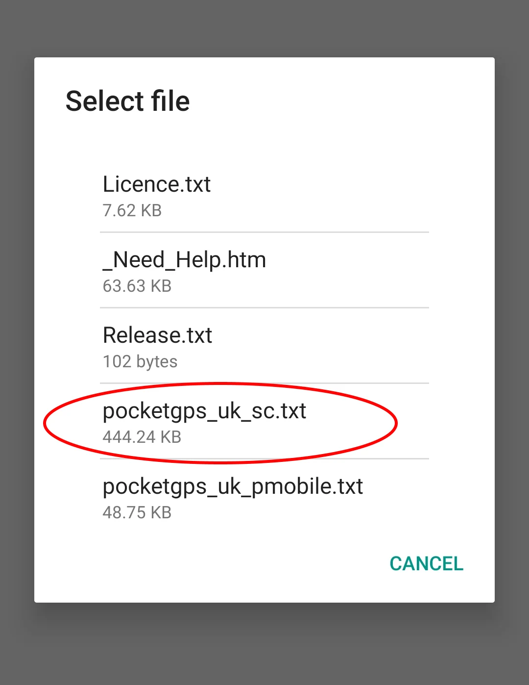 6. The app will display content of the zip archive. Select pocketgps_uk_sc.txt file.