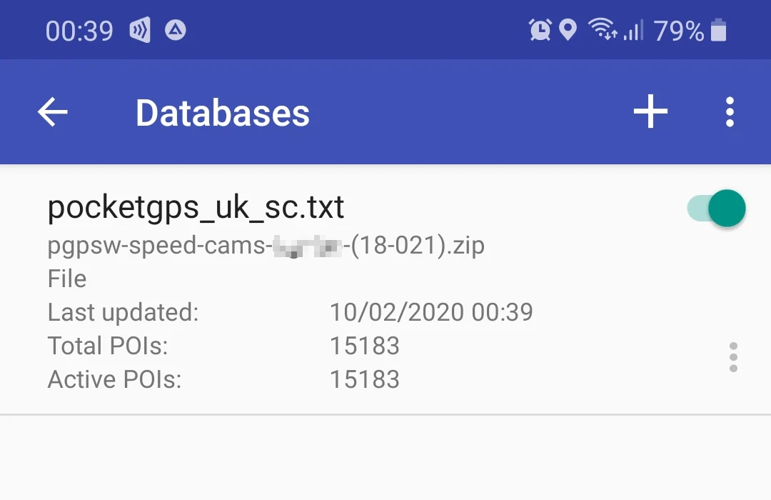 3. Run Speedtrap Alert app, navigate to the app settings, and select the Databases item there. Then tap the "+" menu button. The app may ask you to grant it permission to access internal phone storage. Answer yes.