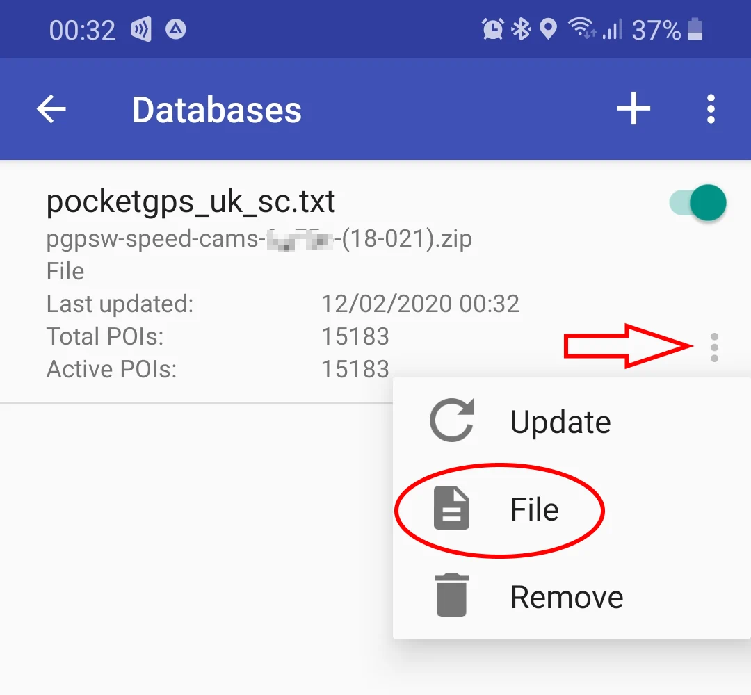 Once a new database version was announced, repeat steps 1 and 2. At step 3 tap the context menu 3-dots button and select the File command.